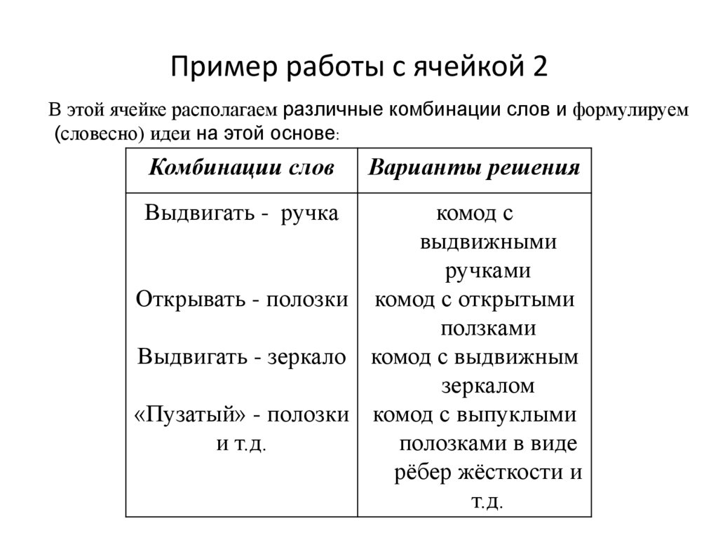 Пример работы с ячейкой 2В этой ячейке располагаем различные комбинации слов и формулируем