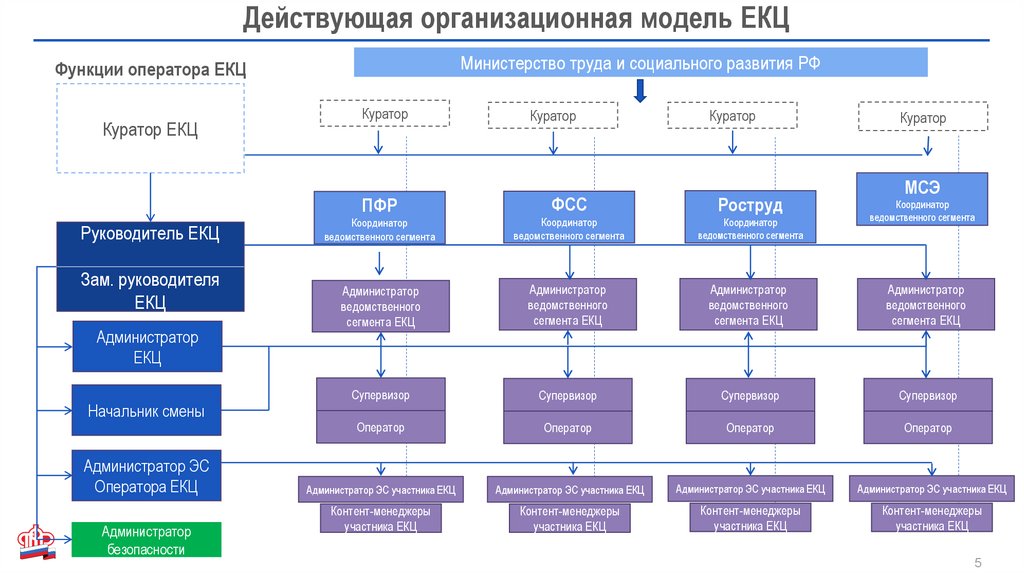 Действующая организационная модель ЕКЦМинистерство труда и социального развития РФ