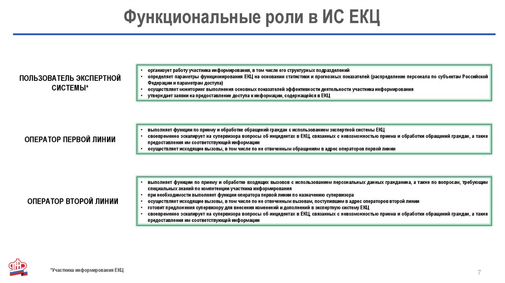 Функциональные роли в ИС ЕКЦПОЛЬЗОВАТЕЛЬ ЭКСПЕРТНОЙ