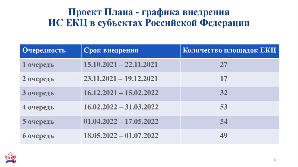 Проект Плана - графика внедренияИС ЕКЦ в субъектах Российской Федерации