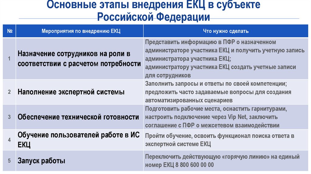 Основные этапы внедрения ЕКЦ в субъектеРоссийской Федерации