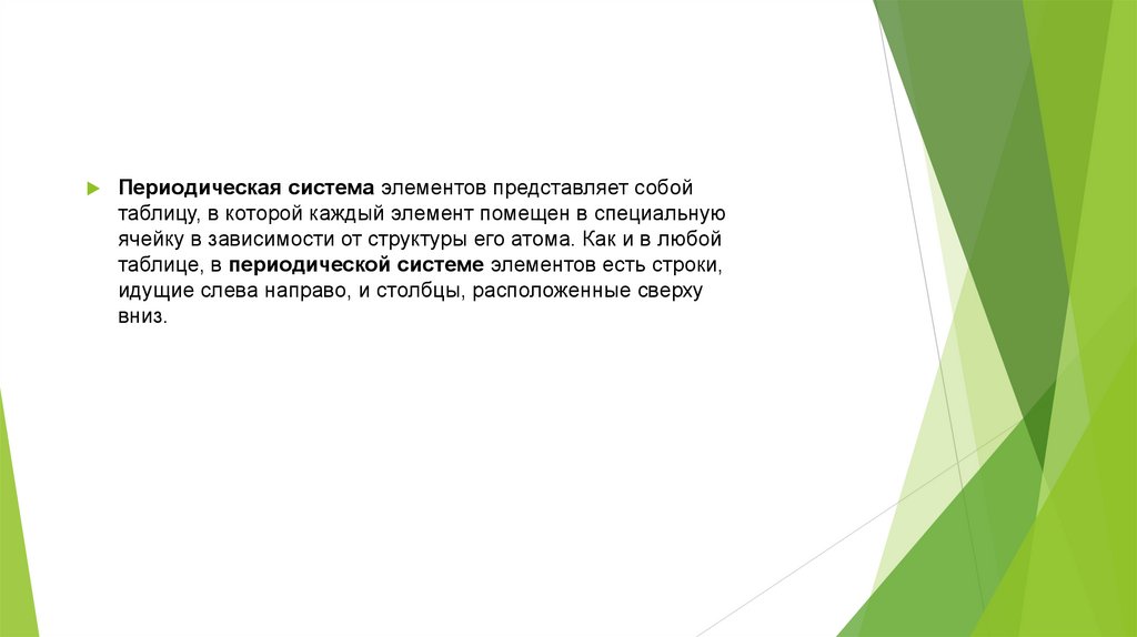 Периодическая система элементов представляет собойтаблицу, в которой каждый элемент помещен в специальную