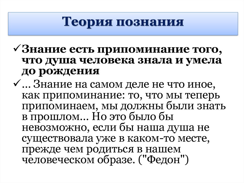 Теория познанияЗнание есть припоминание того,