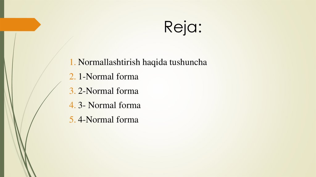 Reja:1. Normallashtirish haqida tushuncha