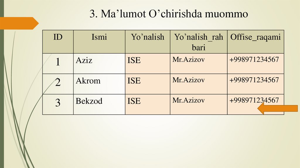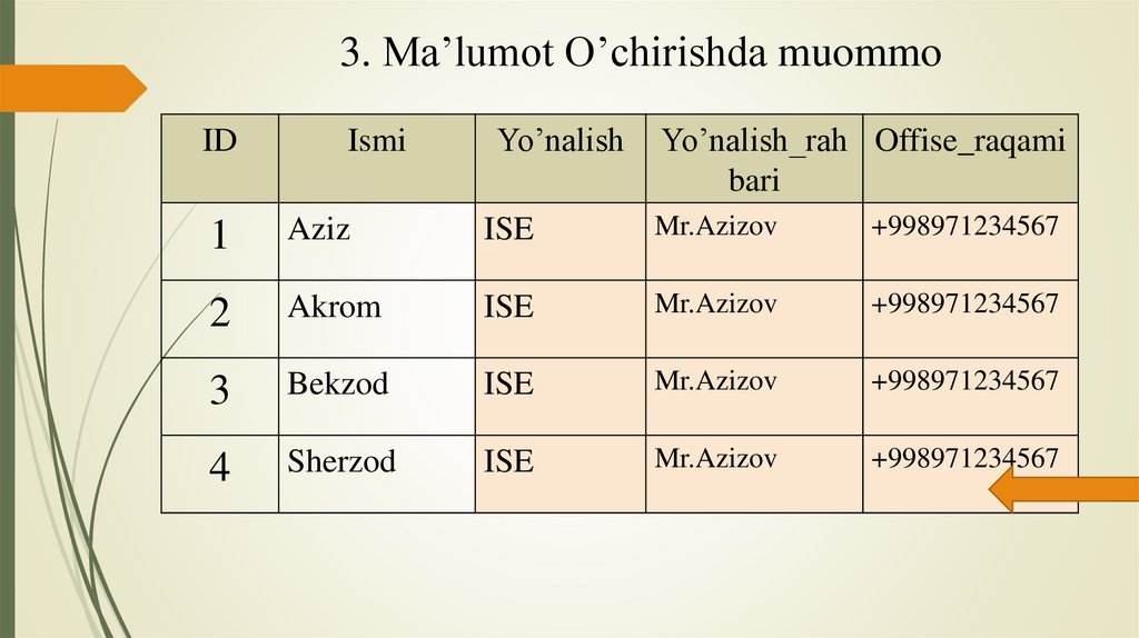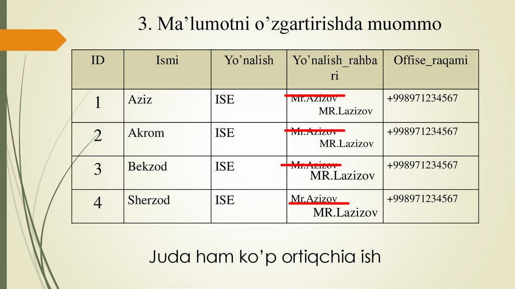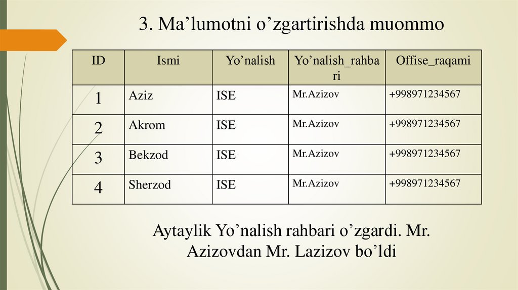 3. Ma’lumotni o’zgartirishda muommoID