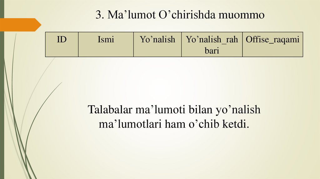 3. Ma’lumot O’chirishda muommoID