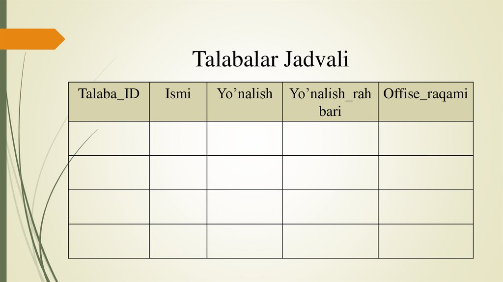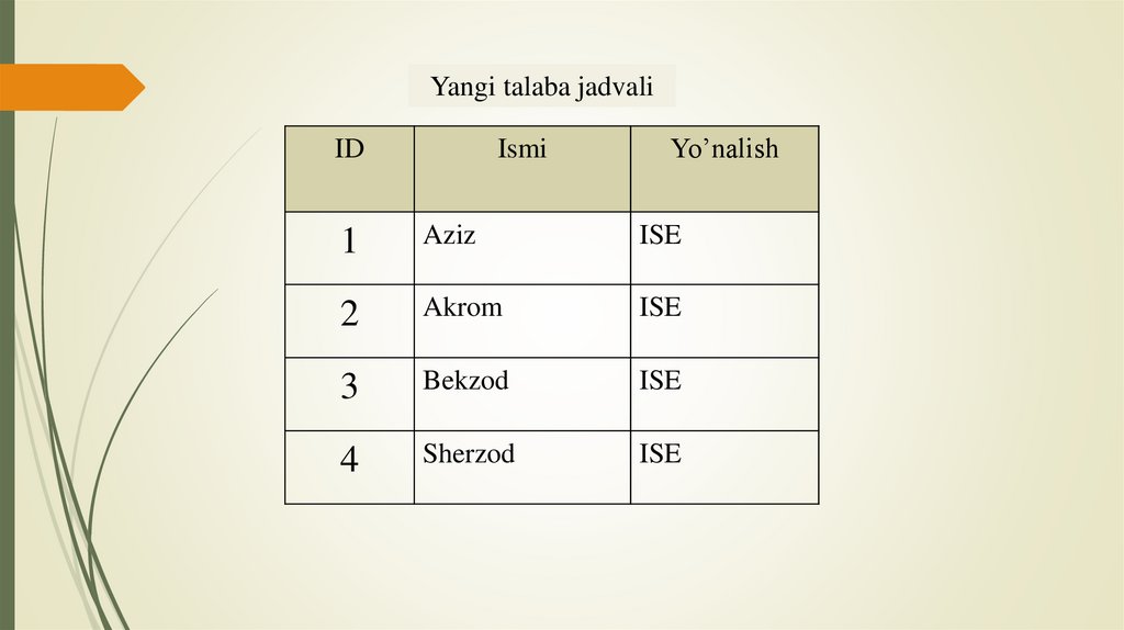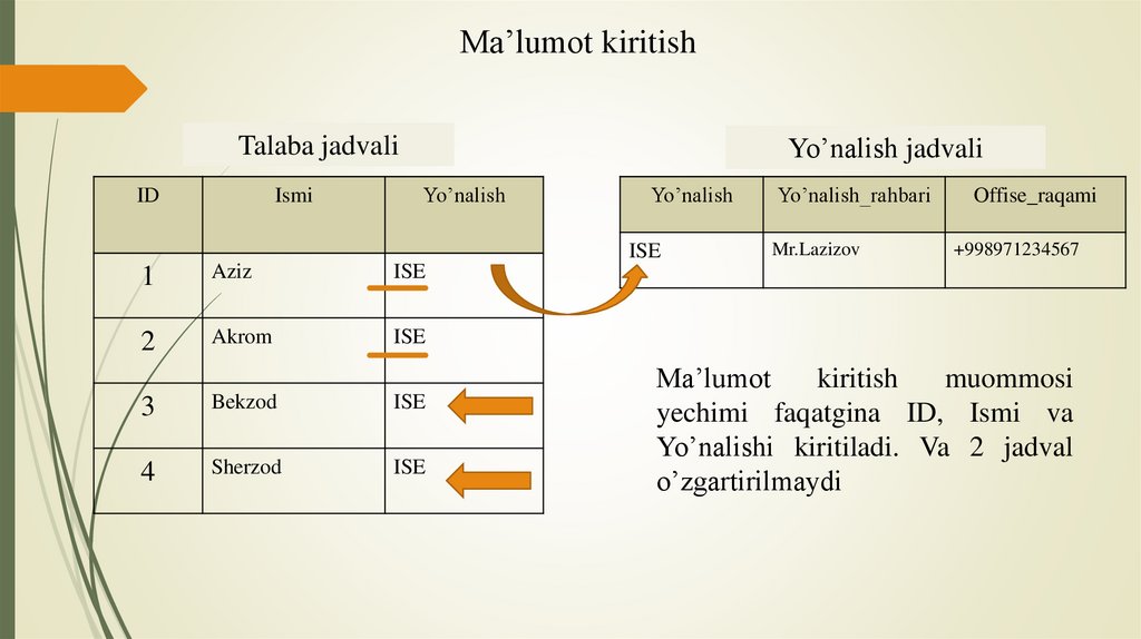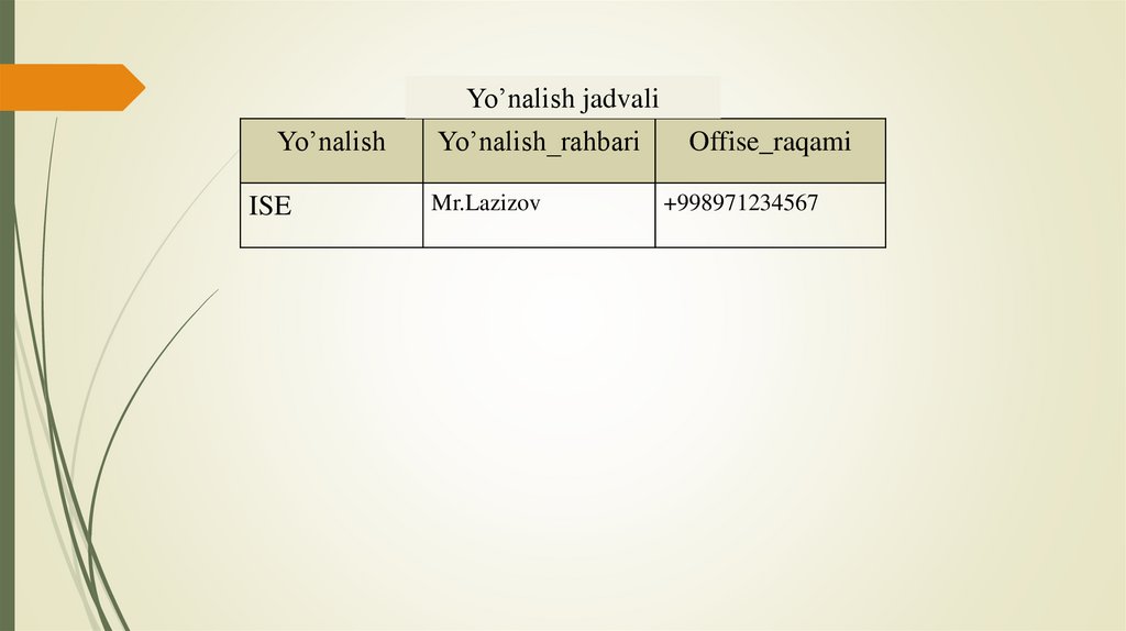 Ma’lumot kiritishYo’nalish jadvali