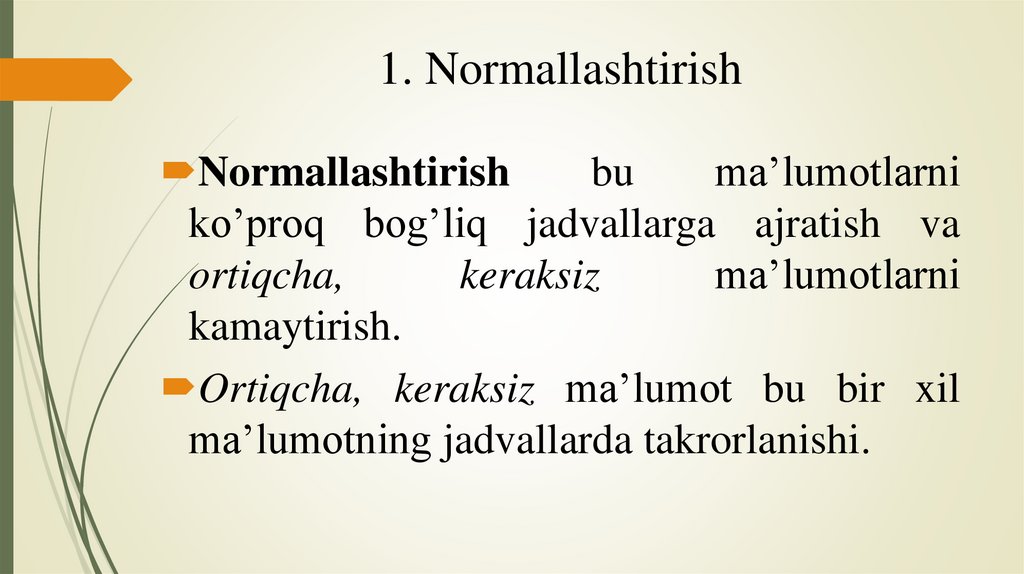 1. NormallashtirishNormallashtirish