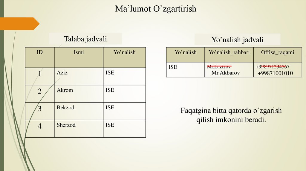 Ma’lumotlarni o’zgartirishda