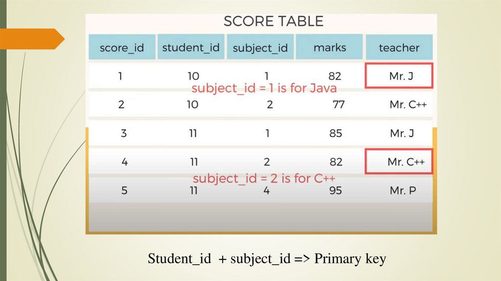 Student_id + subject_id => Primary key45.