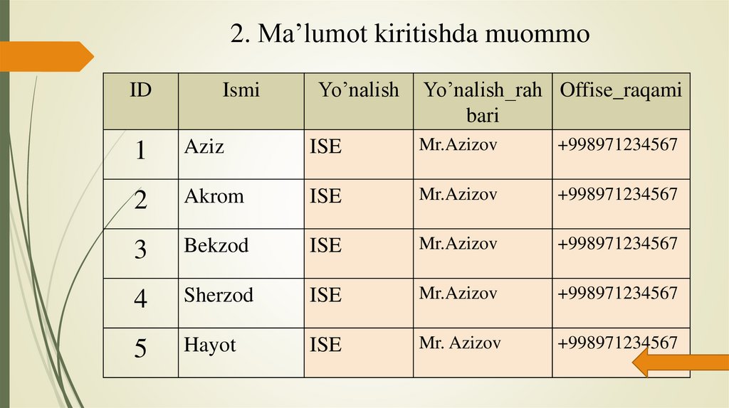 2. Ma’lumot kiritishda muommoID