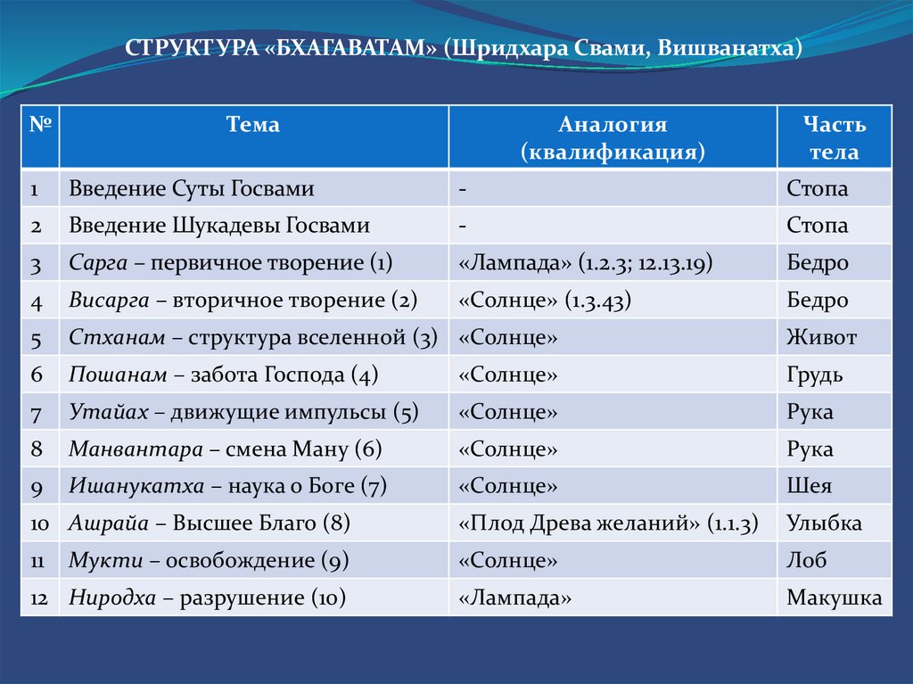 СТРУКТУРА «БХАГАВАТАМ» (Шридхара Свами, Вишванатха)№