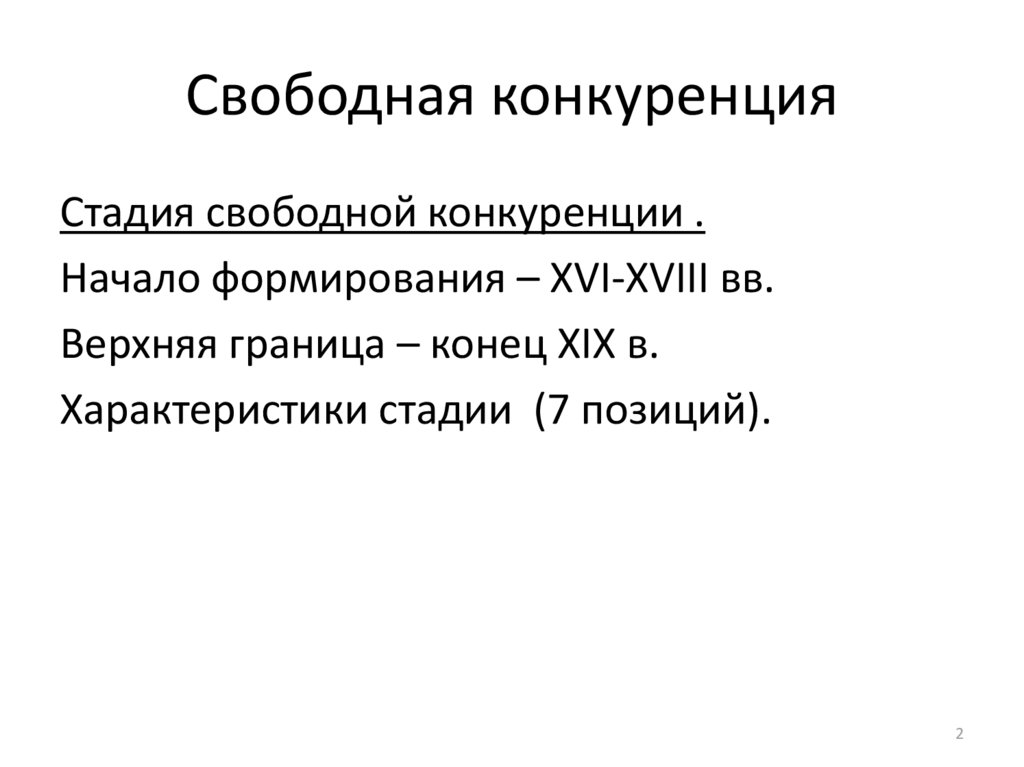 Свободная конкуренцияСтадия свободной конкуренции .