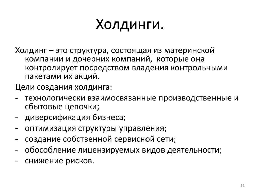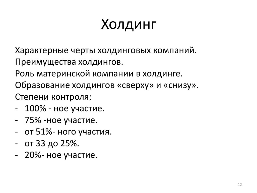 ХолдингХарактерные черты холдинговых компаний.