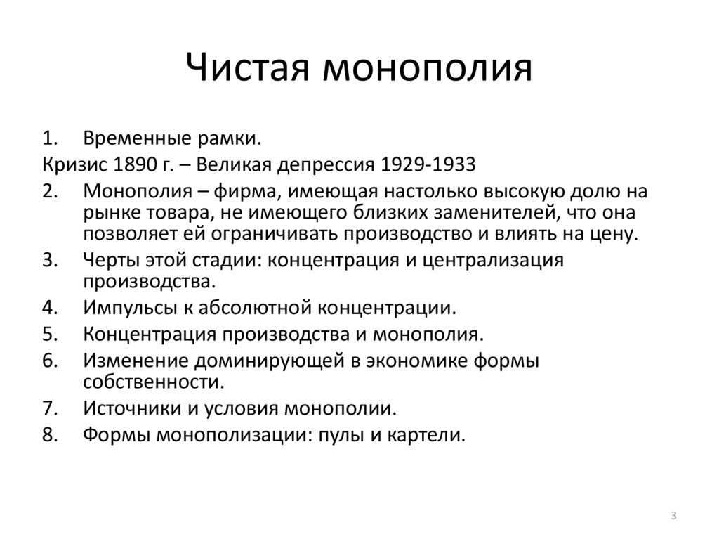 Чистая монополия1. Временные рамки.