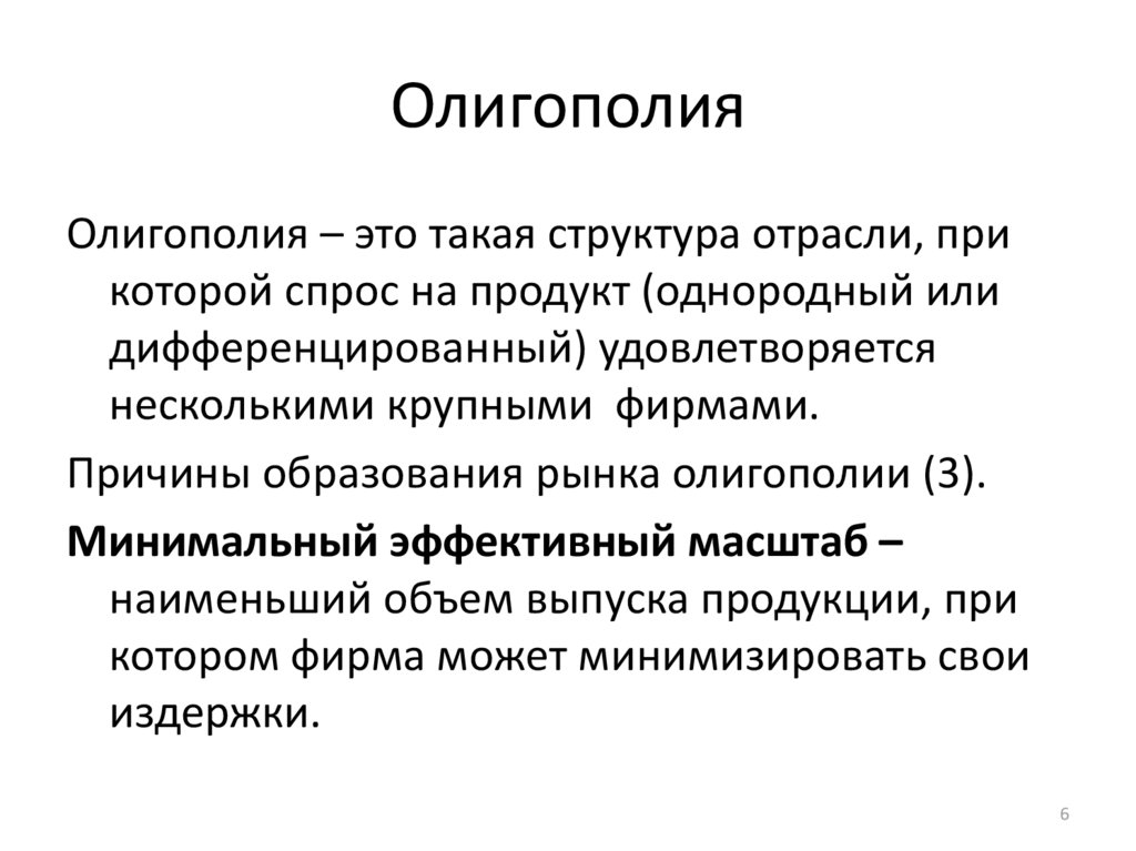Причины образования рынка олигополии (3).