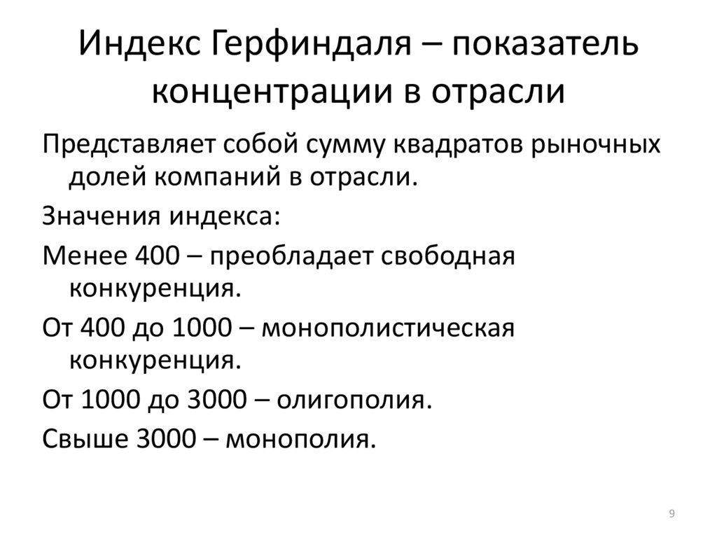 Индекс Герфиндаля – показательконцентрации в отрасли