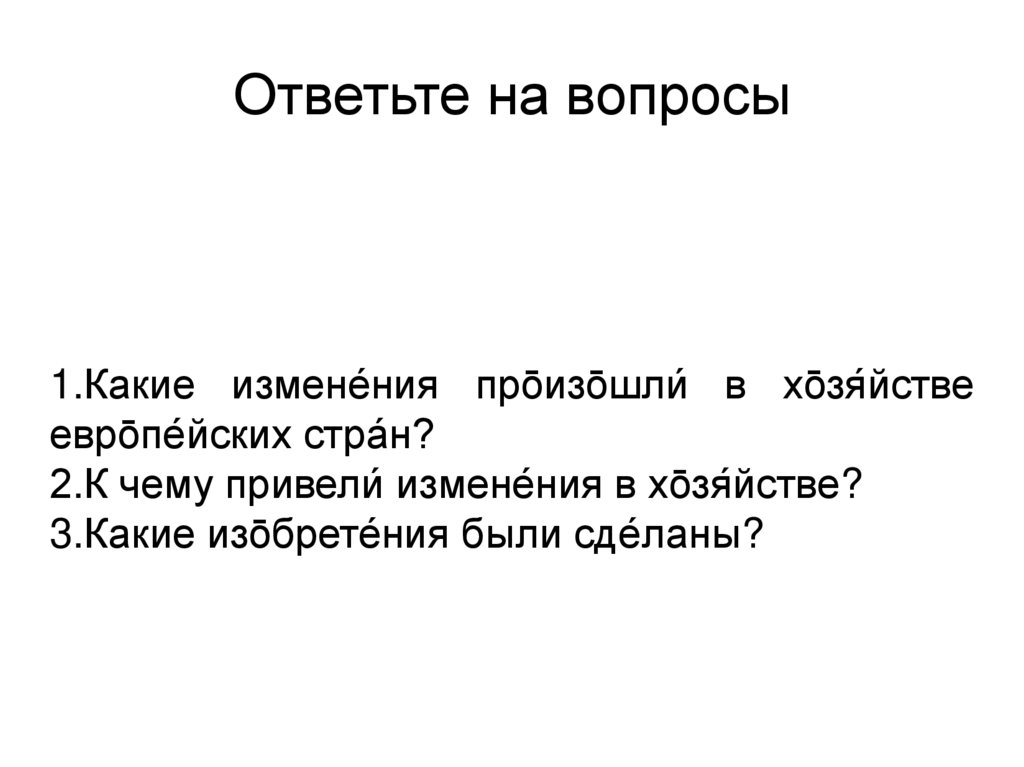 Ответьте на вопросы1.Какие измене́ния про̄изо̄шли́ в хо̄зя́йстве