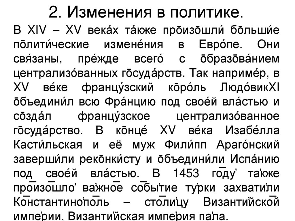 2. Изменения в политике.В XIV – XV века́х та́кже про̄изо̄шли́ бо̄льши́е