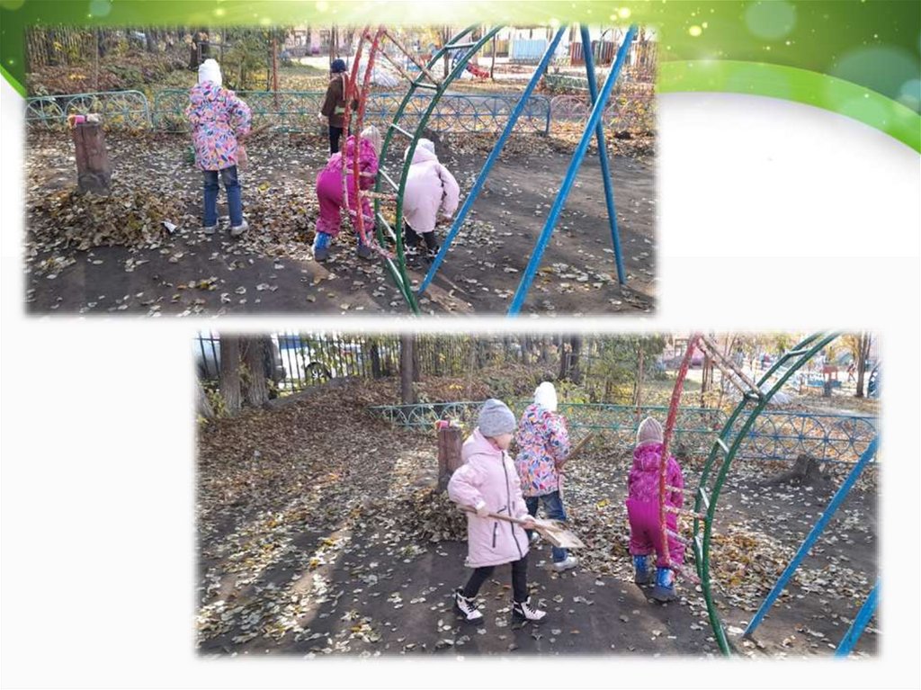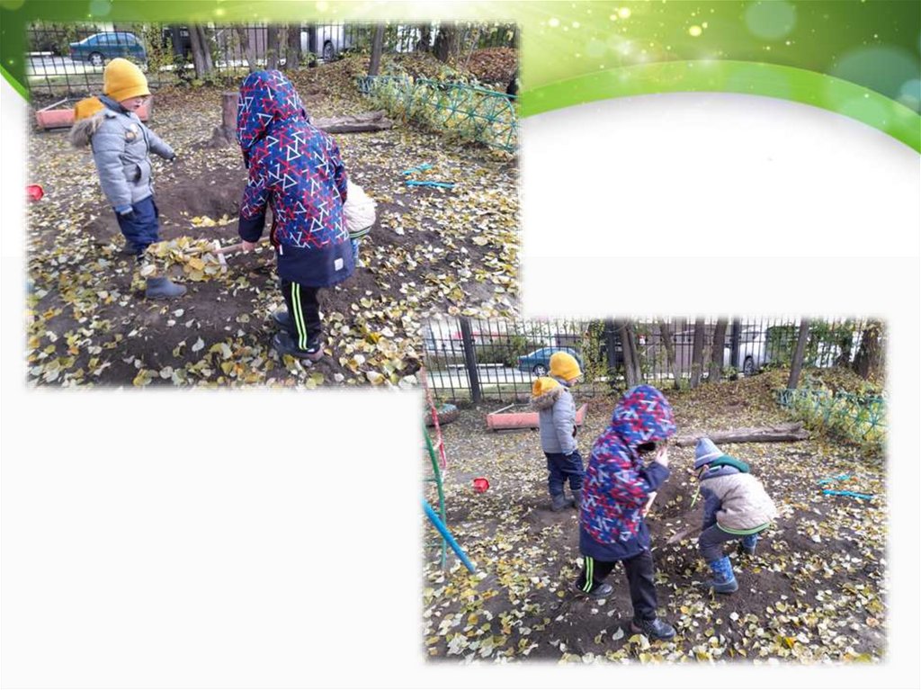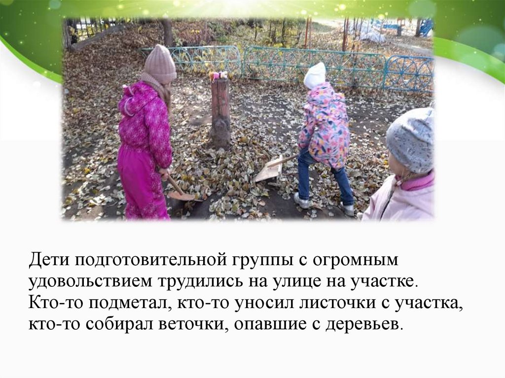 Дети подготовительной группы с огромнымудовольствием трудились на улице на участке.