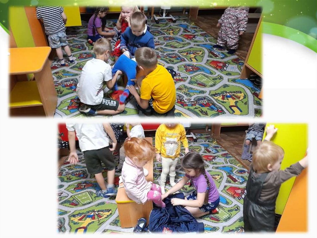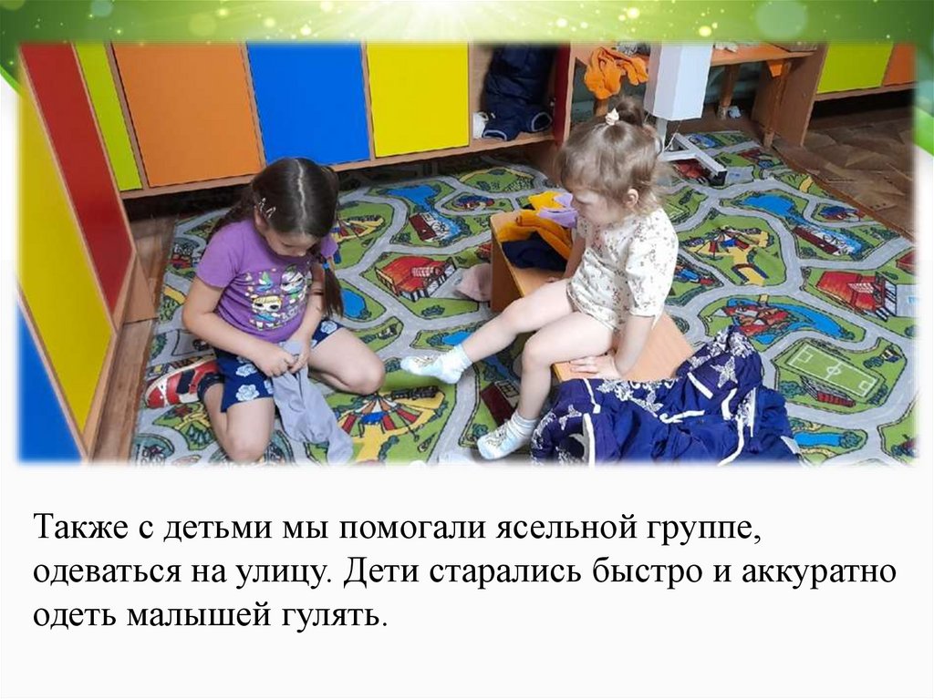 Также с детьми мы помогали ясельной группе,одеваться на улицу. Дети старались быстро и аккуратно