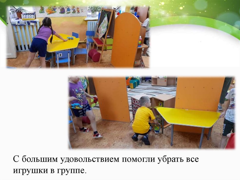 С большим удовольствием помогли убрать всеигрушки в группе.