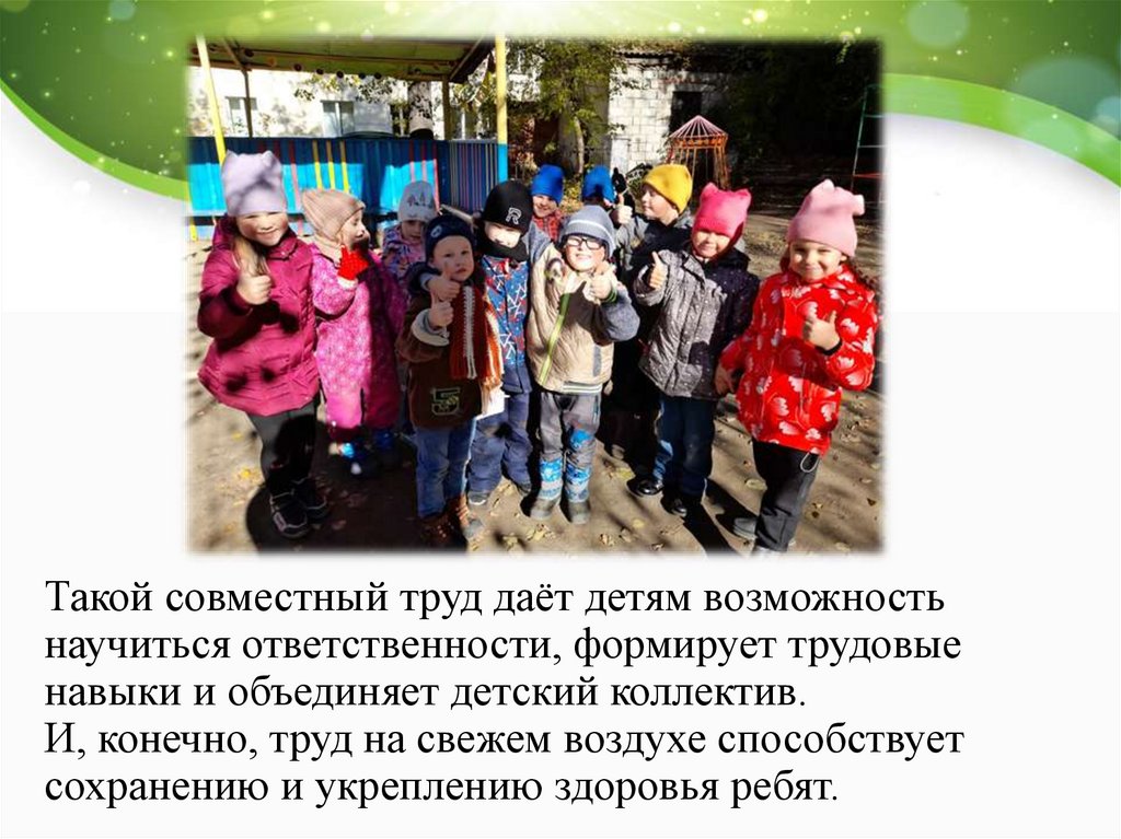 Такой совместный труд даёт детям возможностьнаучиться ответственности, формирует трудовые