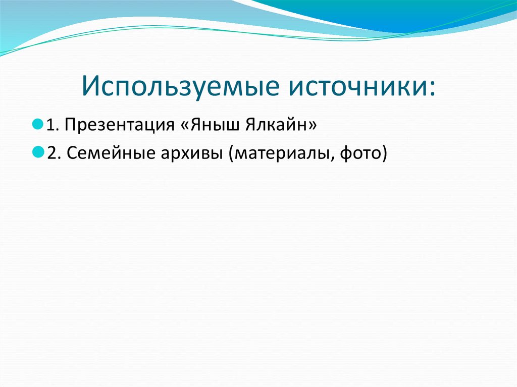 Используемые источники:⚫1. Презентация «Яныш Ялкайн»