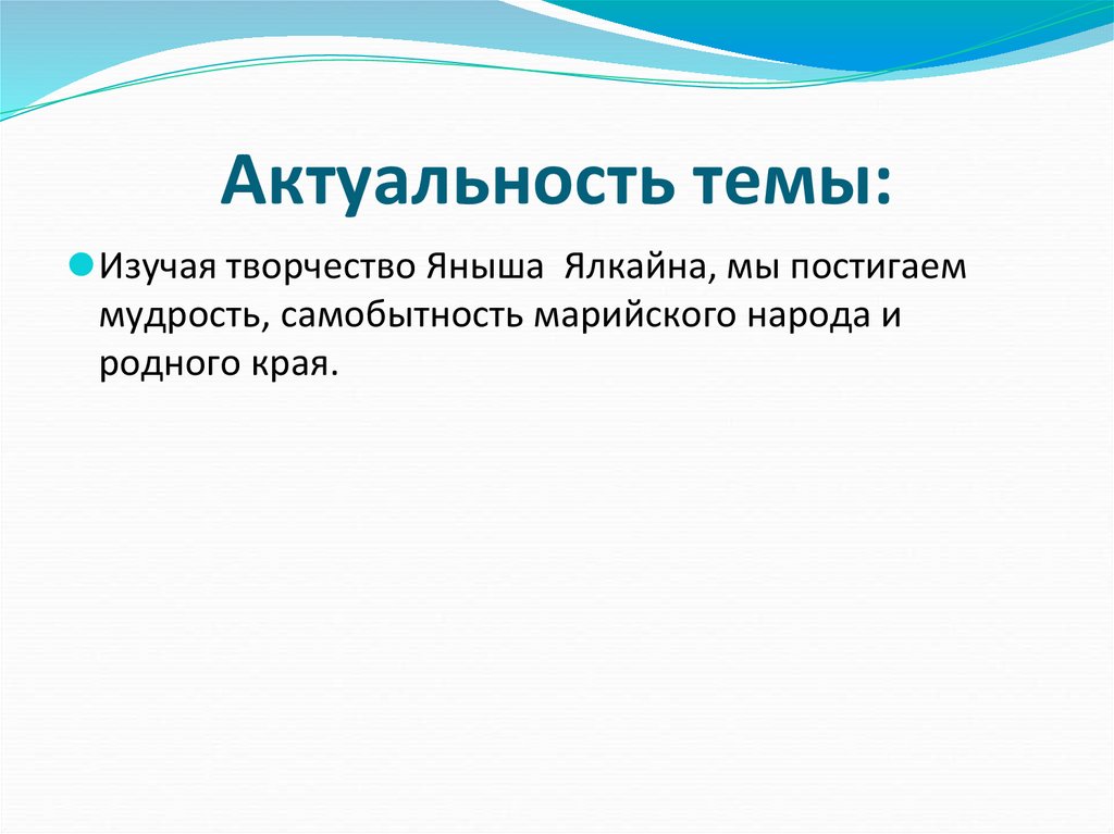 Актуальность темы:⚫Изучая творчество Яныша Ялкайна, мы постигаем