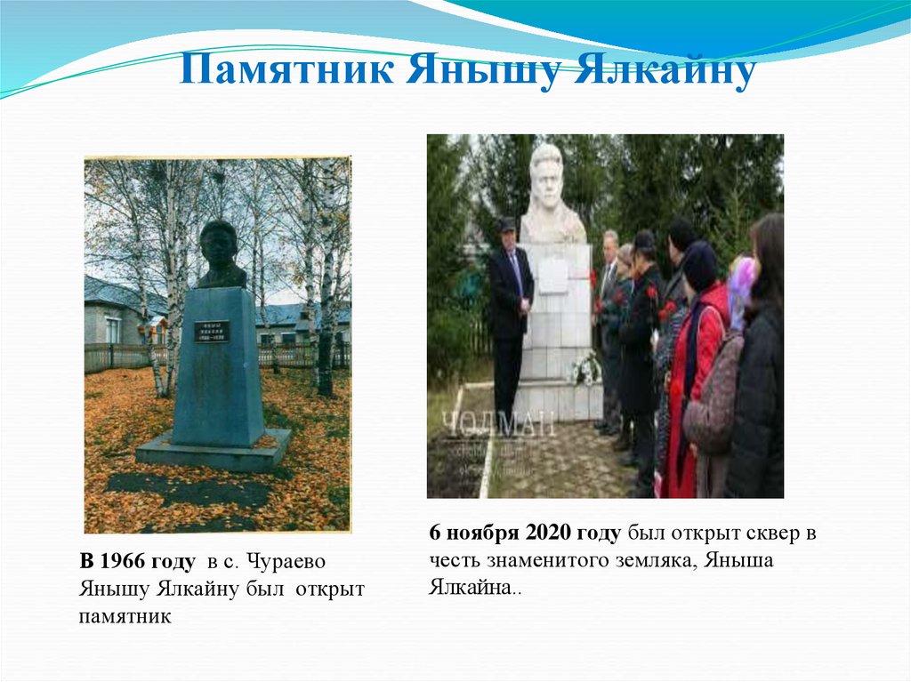 Памятник Янышу ЯлкайнуВ 1966 году в с. Чураево