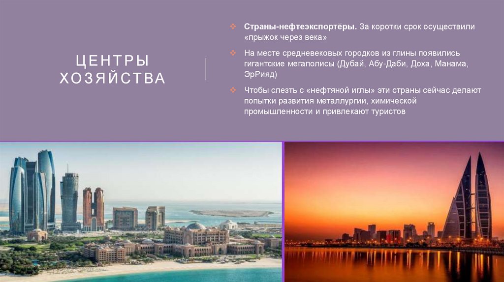 гигантские мегаполисы (Дубай, Абу-Даби, Доха, Манама,