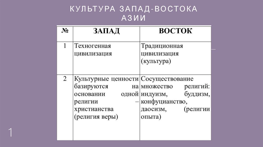 К У Л ЬТ У РА З А П А Д - В О С ТО К ААЗИИ