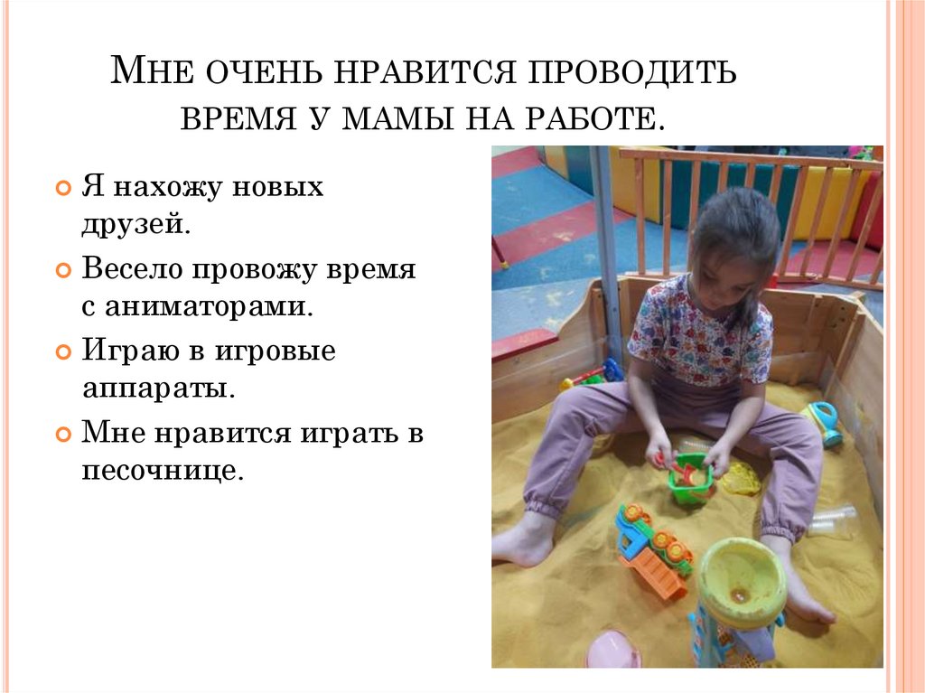 МНЕ ОЧЕНЬ НРАВИТСЯ ПРОВОДИТЬВРЕМЯ У МАМЫ НА РАБОТЕ.