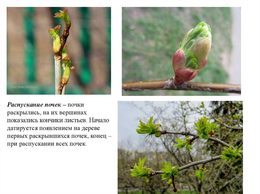 Цветение – начало отмечают датой распускания 5-10% цветков на дереве. Конец– если отцвело около 90% цветков (осыпались, завяли или побурели лепестки).