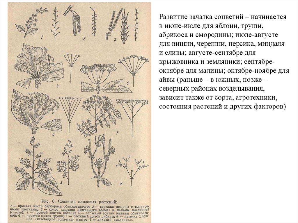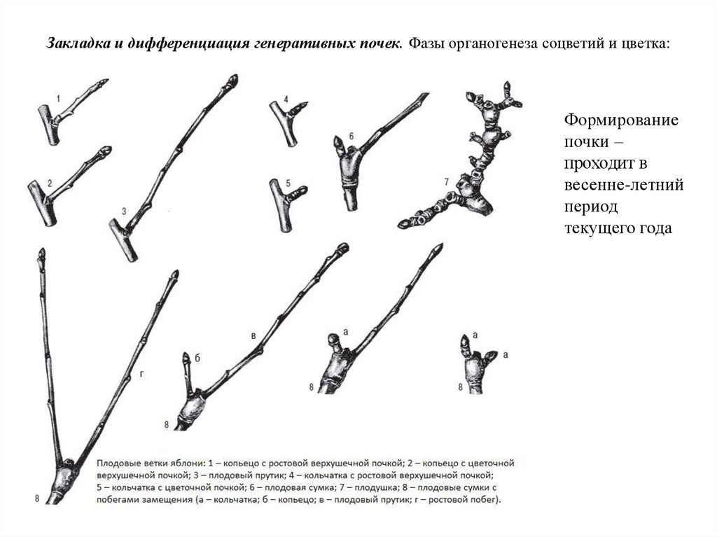 Развитие зачатка соцветий – начинаетсяв июне-июле для яблони, груши,