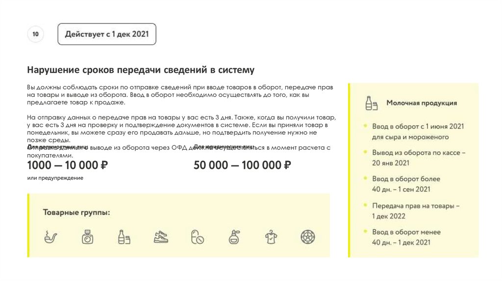 Нарушение сроков передачи сведений в системуВы должны соблюдать сроки по отправке сведений при вводе товаров в оборот, передаче прав