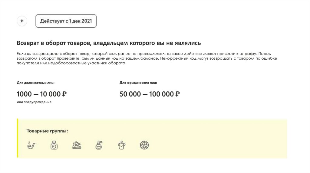 Возврат в оборот товаров, владельцем которого вы не являлисьЕсли вы возвращаете в оборот товар, который вам ранее не принадлежал, то такое действие может привести к штрафу. Перед