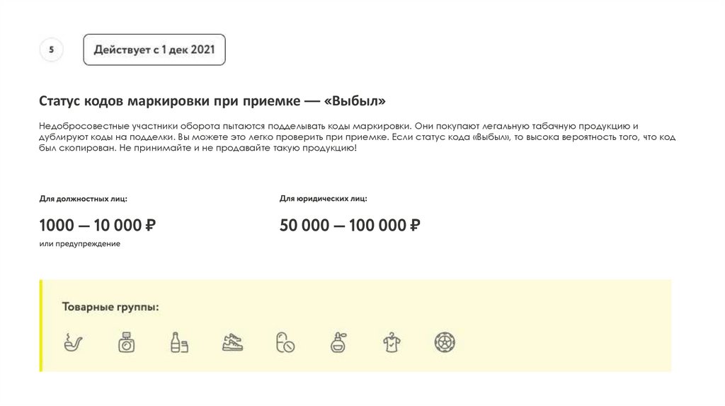 Статус кодов маркировки при приемке — «Выбыл»Недобросовестные участники оборота пытаются подделывать коды маркировки. Они покупают легальную табачную продукцию и