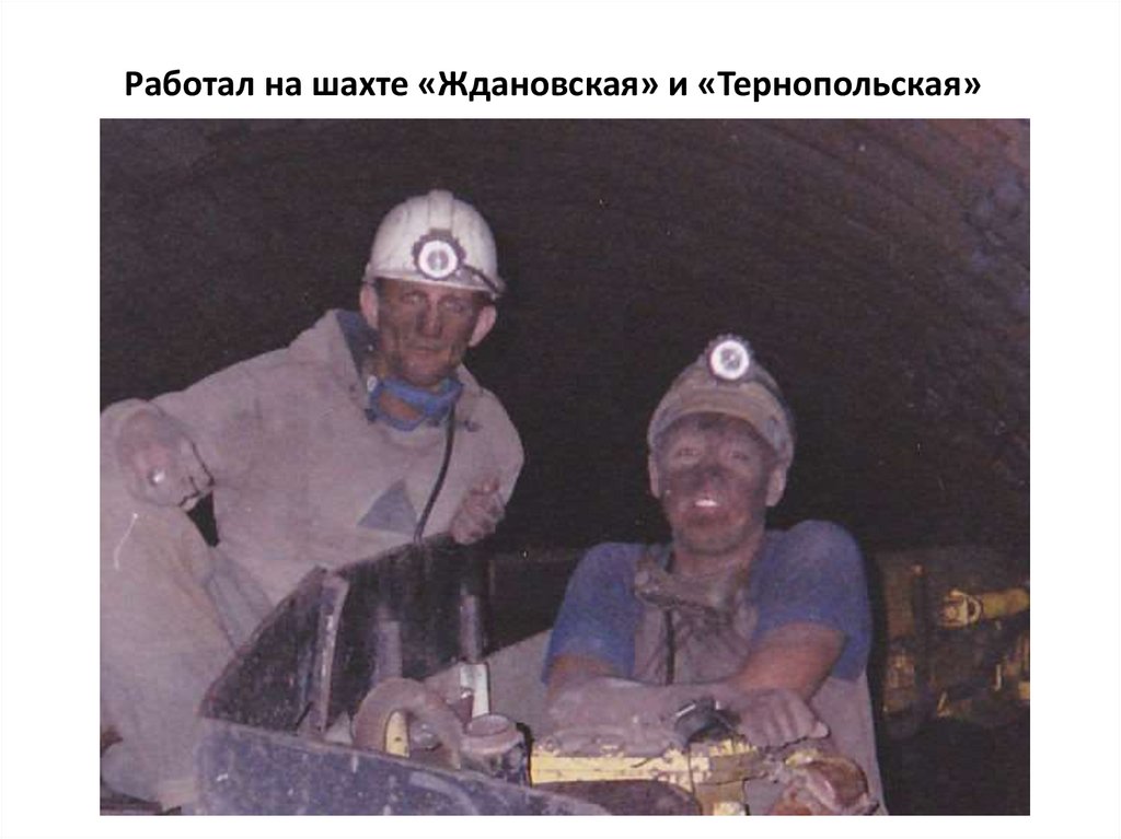 Работал на шахте «Ждановская» и «Тернопольская»7.