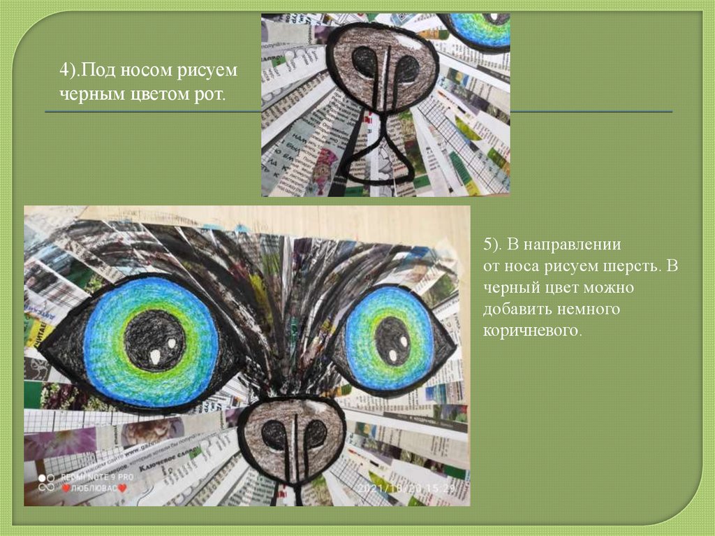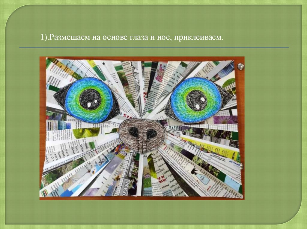 1).Размещаем на основе глаза и нос, приклеиваем.3.