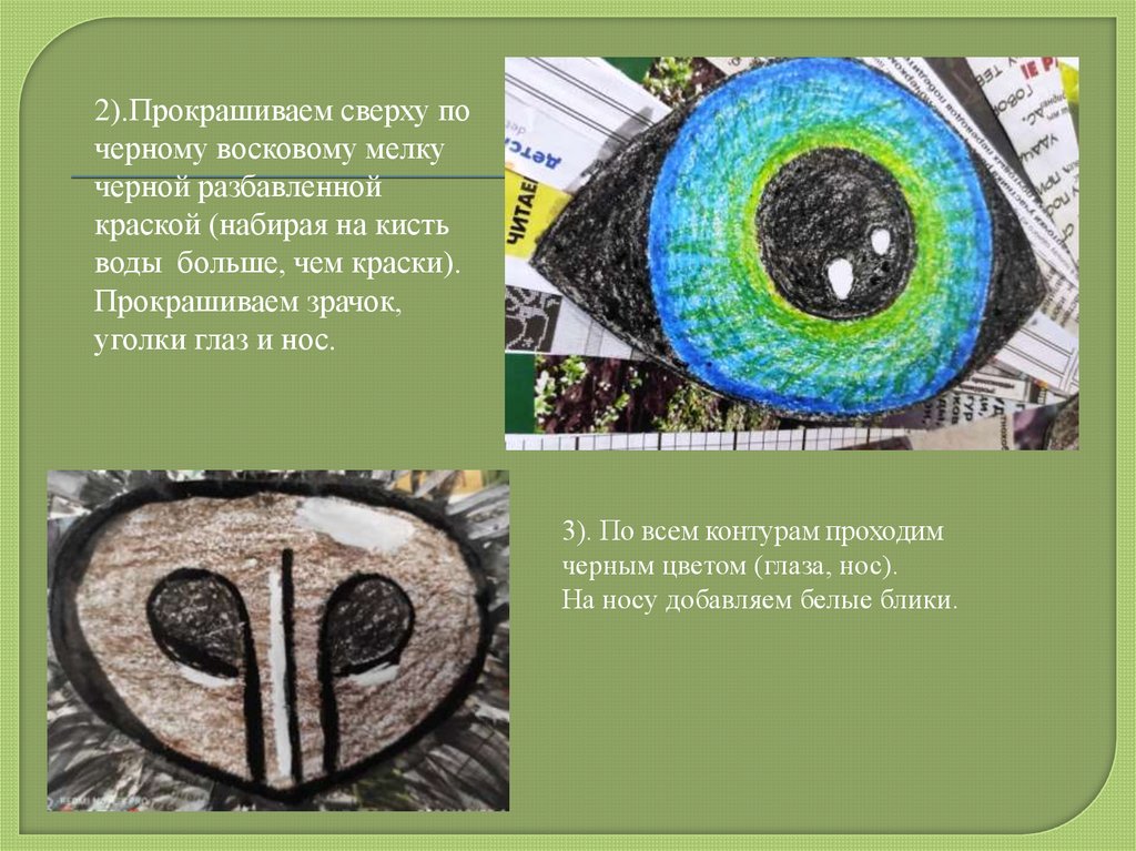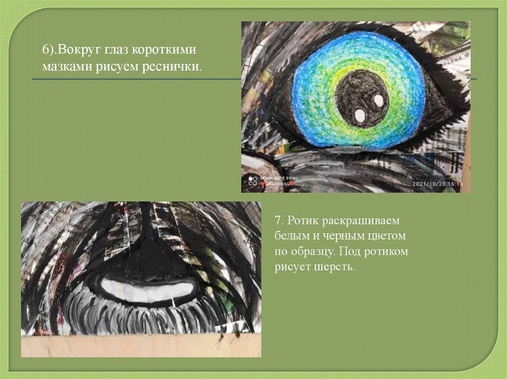 6).Вокруг глаз короткимимазками рисуем реснички.
