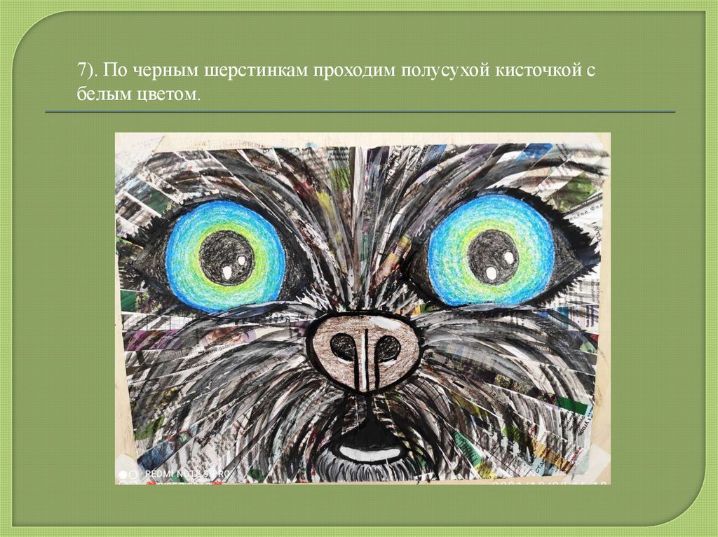 7). По черным шерстинкам проходим полусухой кисточкой сбелым цветом.