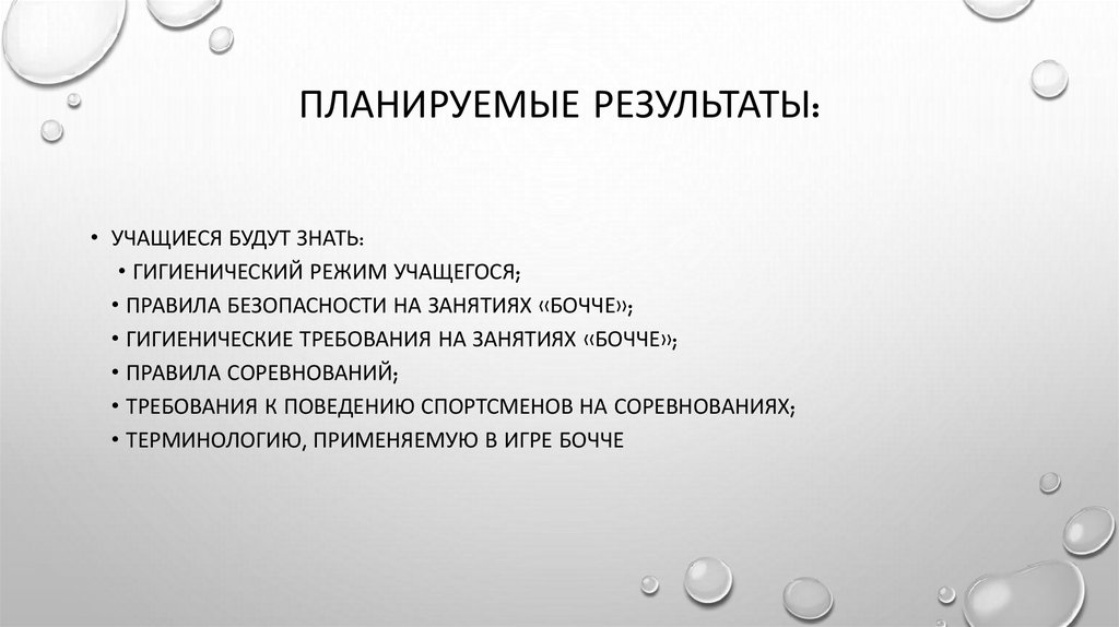 • ГИГИЕНИЧЕСКИЕ ТРЕБОВАНИЯ НА ЗАНЯТИЯХ «БОЧЧЕ»;