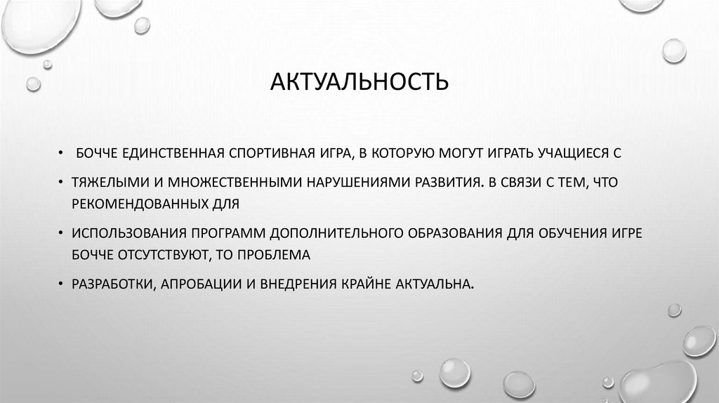 АКТУАЛЬНОСТЬ• БОЧЧЕ ЕДИНСТВЕННАЯ СПОРТИВНАЯ ИГРА, В КОТОРУЮ МОГУТ ИГРАТЬ УЧАЩИЕСЯ С