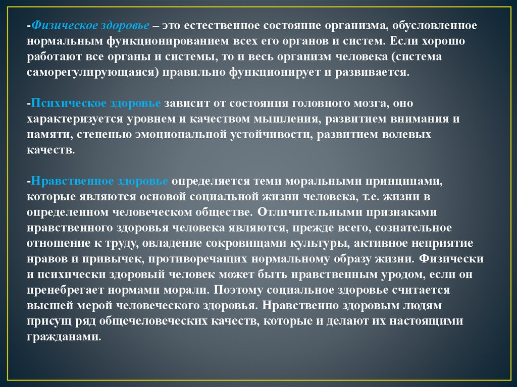 пренебрегает нормами морали. Поэтому социальное здоровье считается