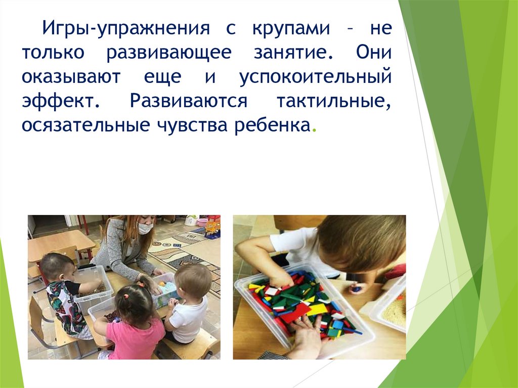 Игры-упражнения с крупами – нетолько развивающее занятие. Они