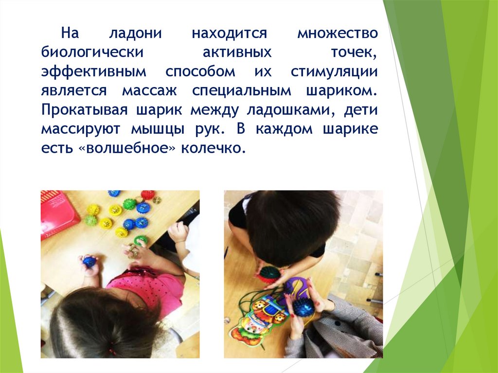 массируют мышцы рук. В каждом шарике