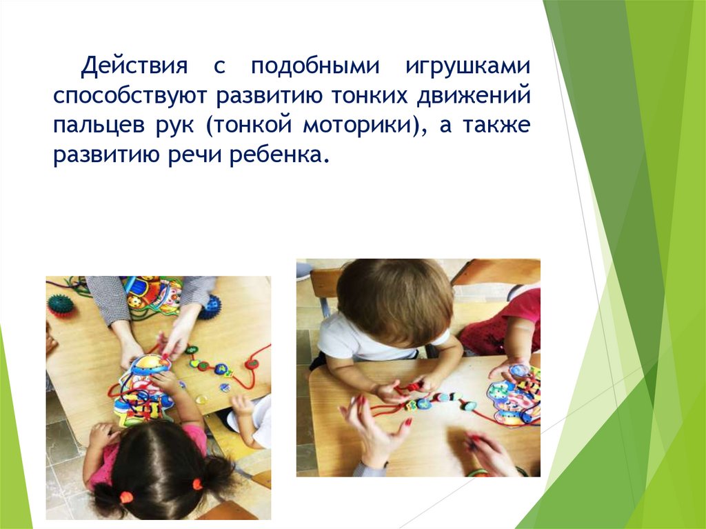 Действия с подобными игрушкамиспособствуют развитию тонких движений