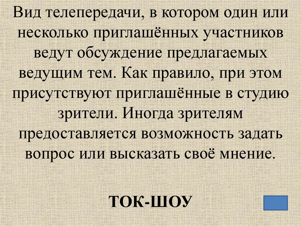 Вид телепередачи, в котором один илинесколько приглашённых участников