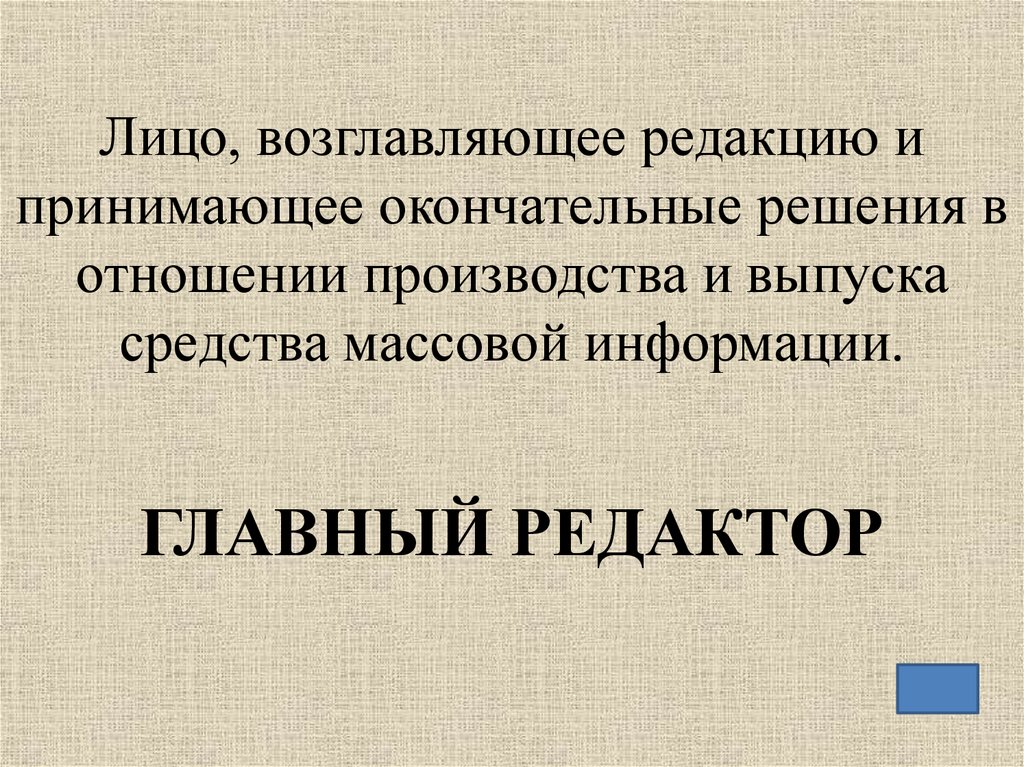 Лицо, возглавляющее редакцию ипринимающее окончательные решения в